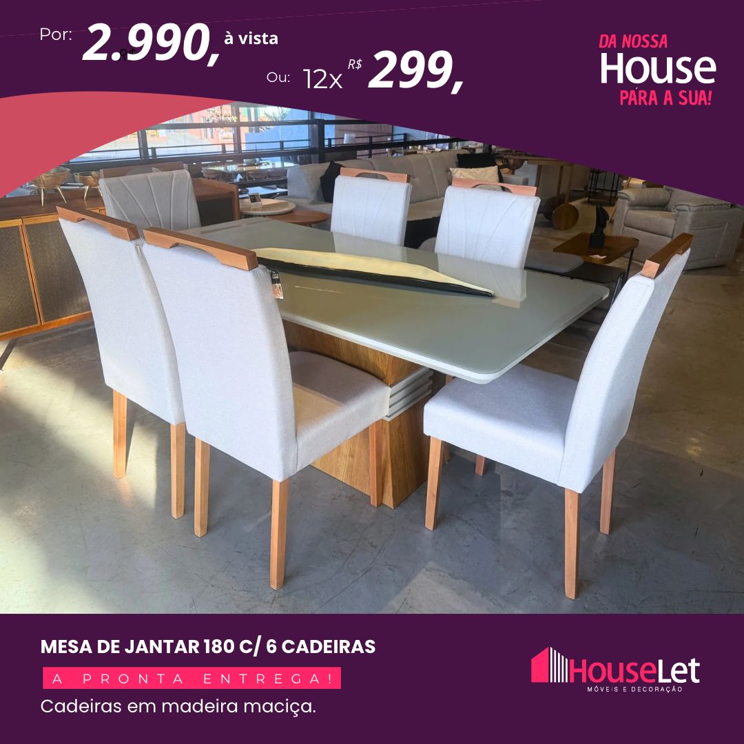 Mesa de Jantar 180 com 6 cadeiras